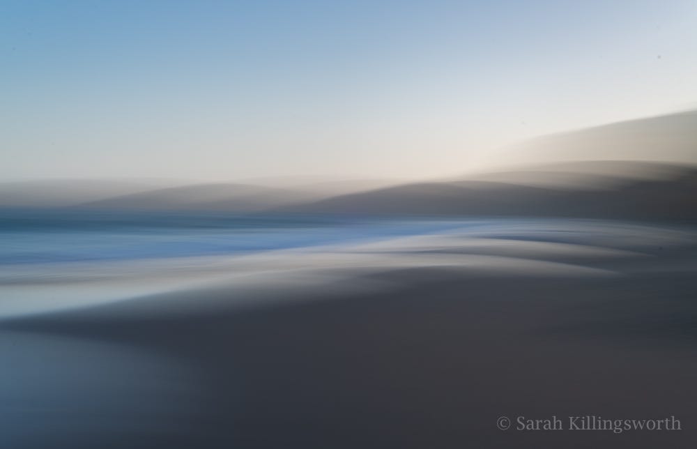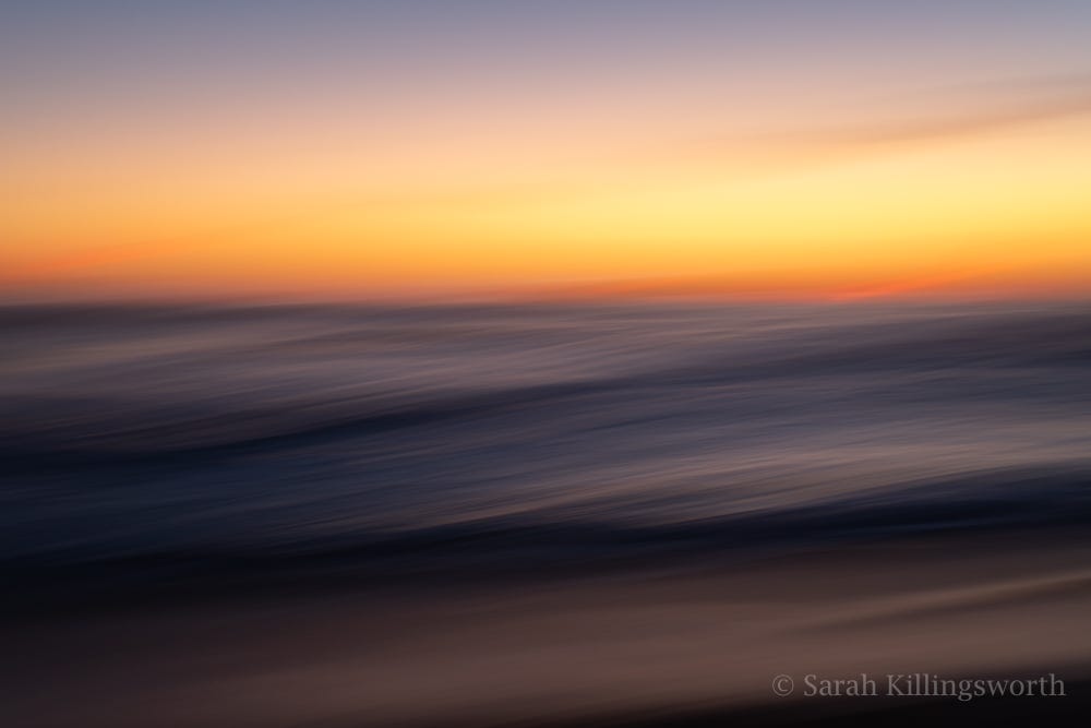 By moving the camera when the shutter is open, I am blending colors and tones and creating a unique image. I look for landscapes or objects with contrasting colors and tones, and for some movements, strong vertical or horizontal lines in the composition. Things that are much brighter than the rest of the scene will create hot spots or white lines, which I try to avoid. For each of the movements listed below, I am also sharing an image, which is just one example of the end result using that movement. But this is a dynamic form of art, and tiny adjustments in angle, speed, or something moving in the frame itself - like the shifting pattern of the clouds or placement of the white foam with waves breaking- will all influence the end result in mysterious and exciting ways.