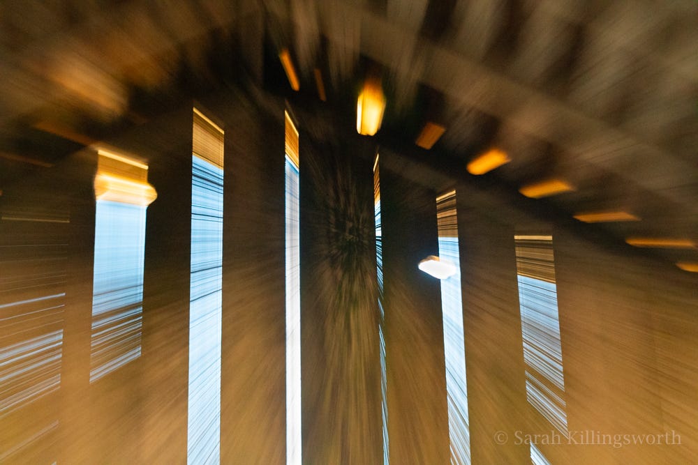 And the spin, where I hold one end of the camera and spin my wrist to the left or the right, as if I am turning a steering wheel. This creates a bull’s eye effect in the image, which can be fascinating, or dizzying. Or both!
